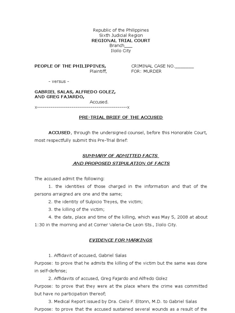 sample of pretrial brief for the defense Brief (Law) Witness
